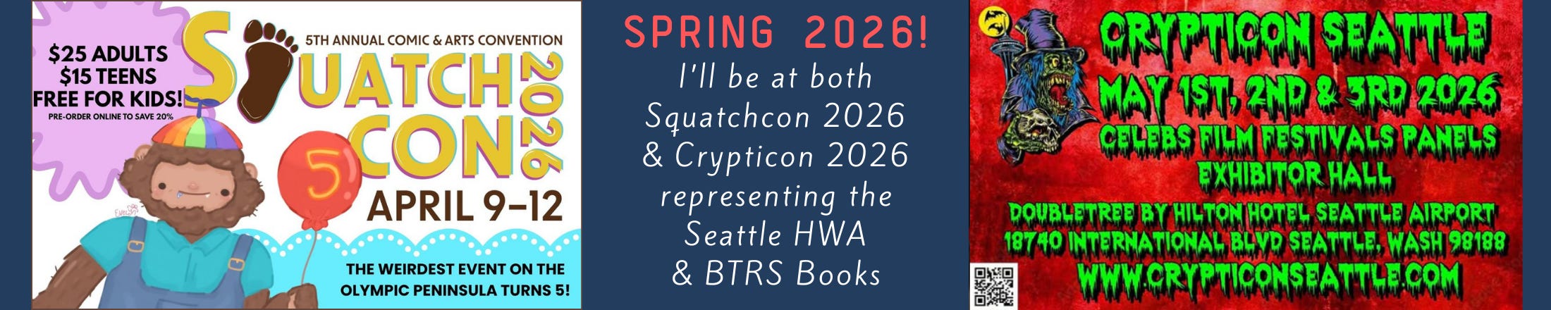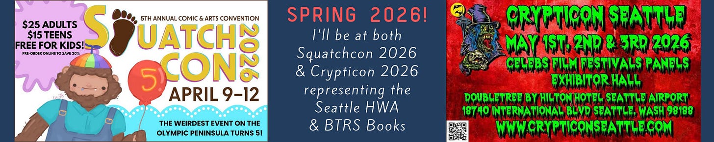 Yes, there’s such a thing as a convention devoted to our beloved Bigfoot, and I’ll be participating in the writers’ program track with several other regional authors in April.